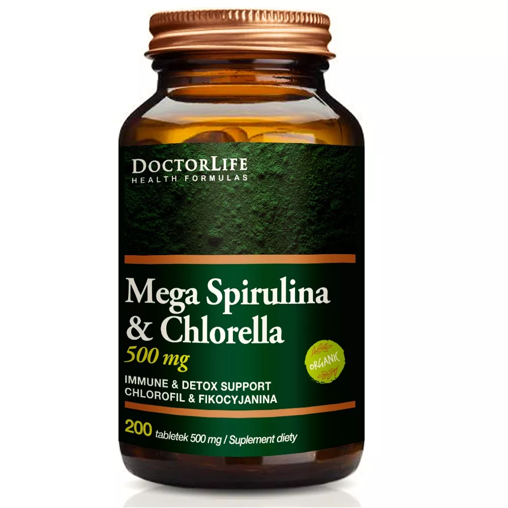 Doctor Life Mega Spirulina & Chlorella 500mg – Suplement diety 200 tabletek