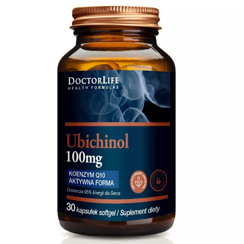 Doctor Life Ubichinol koenzym Q10 to suplement diety, który oferuje najwyższej jakości aktywną, zredukowaną formę koenzymu Q10. Opracowany przez japońską firmę Kaneka, producenta naturalnego koenzymu Q10, ubichinol jest w 95% syntetyczny. W przeciwieństwie do zwykłego CoQ-10, ubichinol nie wymaga przekształcania w organizmie, co sprawia, że jest bezpośrednio dostępny dla wszystkich organów. Rozpuszczony w oleju i zamknięty w specjalnej tłuszczowej kapsułce, ubichinol jest szybciej i lepiej wchłaniany do organizmu. Suplementacja jest szczególnie zalecana osobom po 35. roku życia, gdyż naturalne wytwarzanie tej substancji ulega zmniejszeniu wraz z wiekiem.