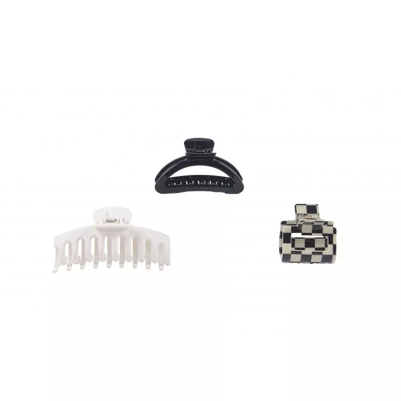 Donegal Zestaw klamr do włosów 3szt. to doskonały wybór dla każdej kobiety, która pragnie dodać swoim fryzurom wyjątkowego charakteru. W skład zestawu wchodzą trzy klamry: duża biała klamra, średniej wielkości czarna klamra oraz mała klamra w czarno-biały wzór szachownicy. Każda z nich idealnie nadaje się do tworzenia różnorodnych stylizacji, od eleganckich po casualowe.