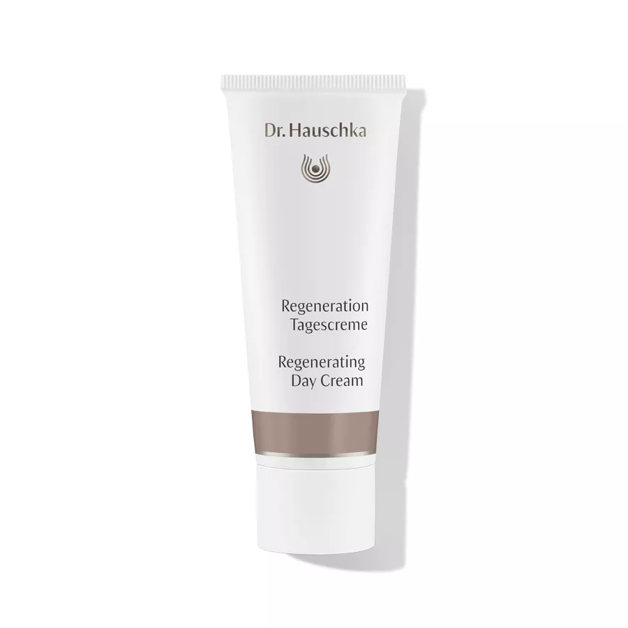 Dr. Hauschka Regenerating Day Cream to luksusowy krem na dzień stworzony z myślą o dojrzałej cerze, który zapewnia uczucie świeżości i aksamitnej gładkości. Jego codzienne stosowanie wzmacnia skórę oraz stymuluje naturalne procesy samoregeneracji. Bogaty w składniki aktywne, krem zawiera wyciągi z żyworódki, czerwonej koniczyny, skrzypu polnego, owoców aceroli i płatków róży, a także olejek z awokado, olejek z nasion maliny i masło shea. Dzięki temu intensywnie nawilża, odświeża i wspiera procesy regeneracyjne skóry.