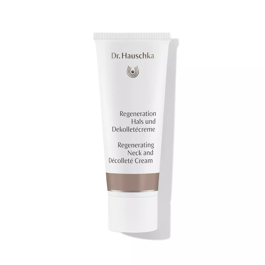 Dr. Hauschka Regenerating Neck and Decollete Cream to wyjątkowy krem regenerujący przeznaczony do pielęgnacji szyi i dekoltu, stworzony specjalnie dla cery dojrzałej. Dzięki starannie dobranym naturalnym składnikom, takim jak wyciągi z prawoślazu, czerwonej koniczyny i liści brzozy, a także olejkom arganowym i z orzechów makadamii, krem dostarcza skórze nowych sił witalnych, intensywnie pielęgnując i zapewniając optymalny poziom nawilżenia. Jego lekka formuła szybko się wchłania, widocznie ujędrniając i uelastyczniając skórę.