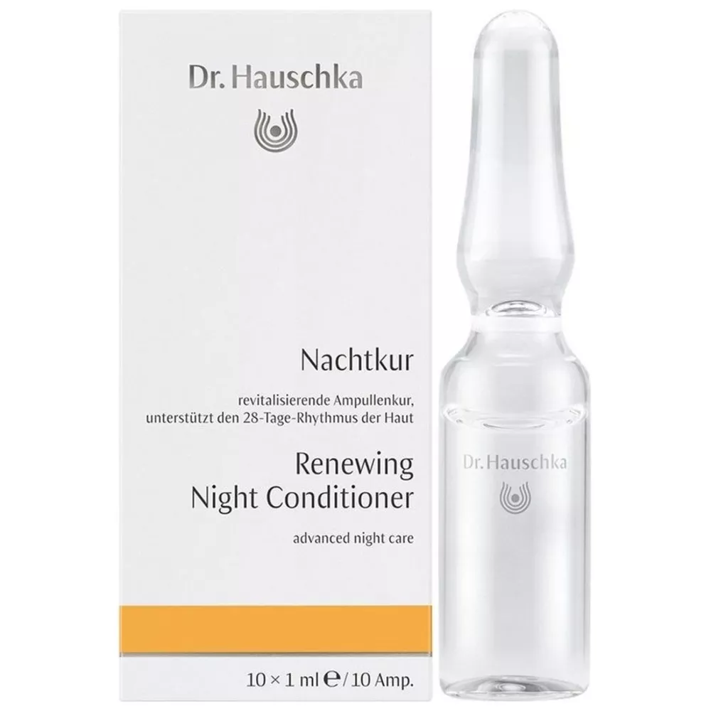 Odkryj moc naturalnej pielęgnacji z Dr. Hauschka Renewing Night Conditioner - kuracją na noc w ampułkach, stworzoną dla każdego rodzaju cery. To wyjątkowe opakowanie zawiera 10 ampułek po 1 ml każda, które oferują nieoleistą formułę, idealną do nocnej regeneracji skóry. Dzięki starannie dobranym składnikom, takim jak wyciągi z róży damasceńskiej, aloesu, korzenia prawoślazu i liści żyworódki pierzastej, kuracja skutecznie odbudowuje, wzmacnia i regeneruje naskórek, stymulując go do odnowy. Twoja cera stanie się promienna, świeża, zdrowa i pełna blasku.