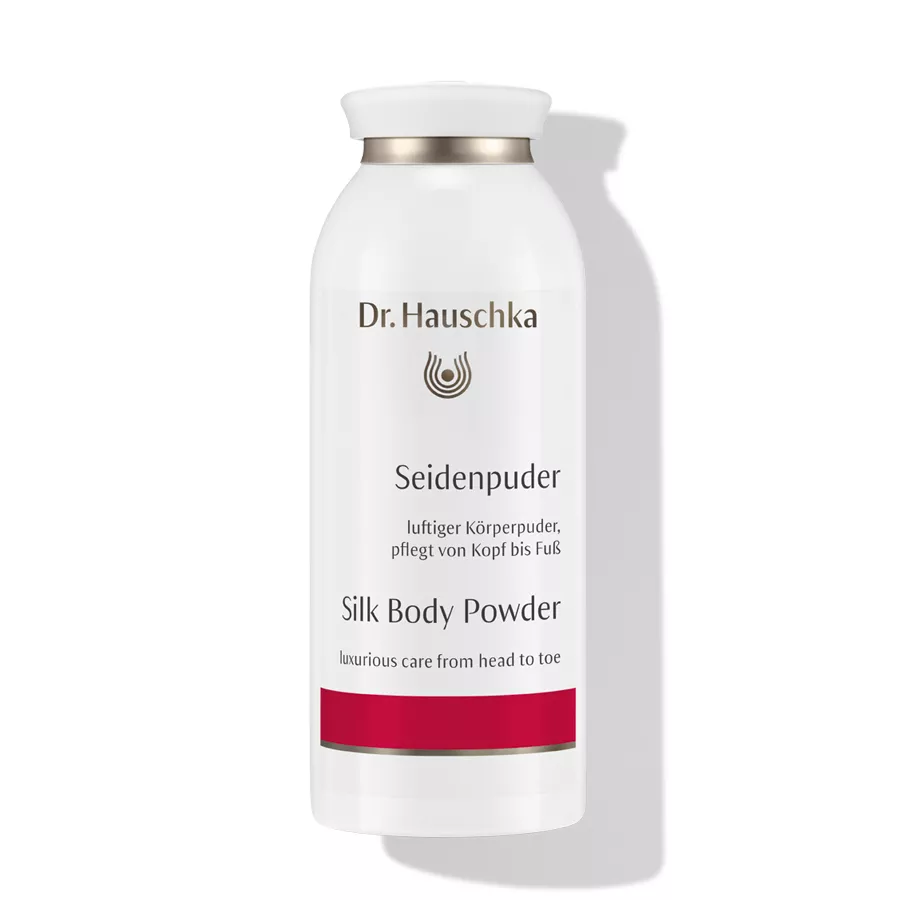 Dr. Hauschka Silk Body Powder to jedwabny puder do ciała, który oferuje niezawodną ochronę i pielęgnację skóry. Dzięki unikalnej formule wzbogaconej wyciągami roślinnymi z szałwii, gencjany oraz kory dębu, produkt łagodzi podrażnienia i zapewnia delikatne działanie dezodorujące. Puder stabilizuje mikroflorę skóry, pozostawiając ją naturalnie matową. Jest to idealny kosmetyk do łagodnej pielęgnacji skóry wrażliwej, zapewniający aksamitną delikatność na całym ciele.