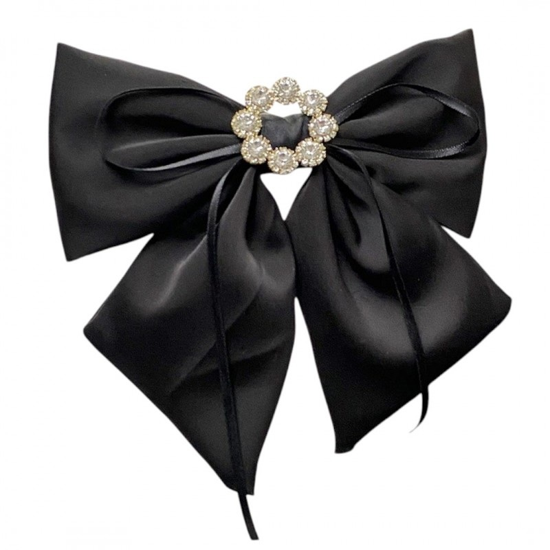 - Elegancki i modny design – czarna kokarda ozdobiona połyskującymi diamencikami przyciąga wzrok i dodaje szyku każdej stylizacji.