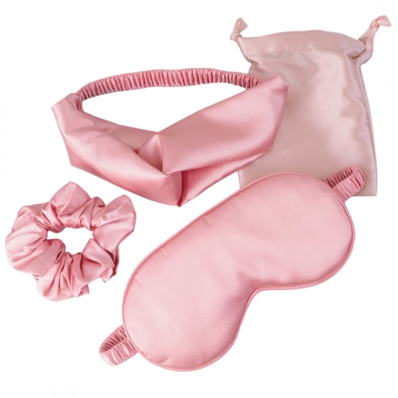 - Kompletny zestaw: opaska do włosów, opaska na oczy, gumka do włosów oraz woreczek