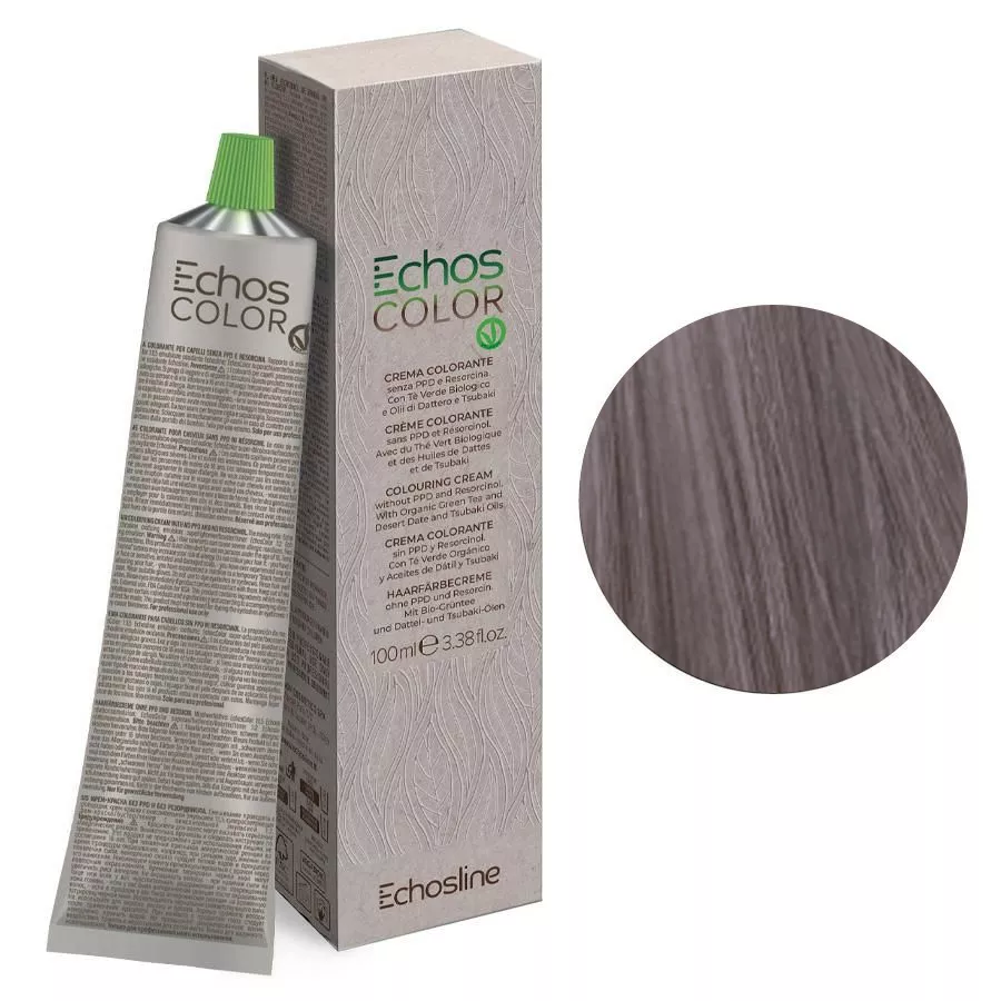 Farba Echosline Echoscolor oferuje naturalne, lśniące i żywe odcienie, które precyzyjnie odpowiadają kolorom na próbniku. Dzięki formule bez PPD i rezorcynolu, zapewnia idealne pokrycie siwych włosów oraz zgodność z paletą kolorów.