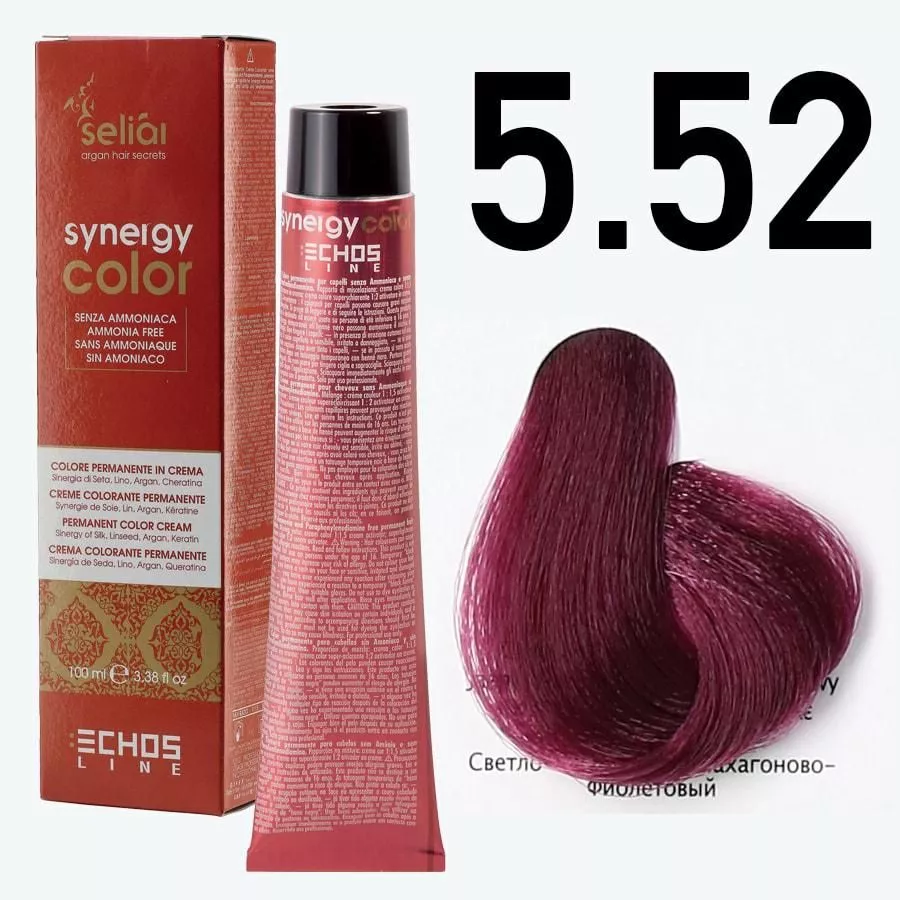 Przenieś swoje włosy na wyższy poziom z Echosline Seliar Synergy Color - profesjonalną farbą do włosów bez amoniaku w odcieniu 5.52 Light Chestnut Mahogany Violet. Ta wyjątkowa formuła, wolna od para-phenylenediaminy (PPD), wzbogacona o keratynę, olejek arganowy, olej lniany i proteiny jedwabiu, oferuje nie tylko intensywny i trwały kolor, ale także doskonałą ochronę i regenerację włosów.
