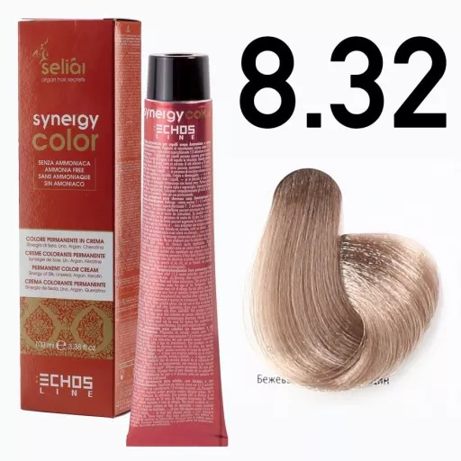 Przenieś swoje włosy na wyższy poziom piękna i trwałości z Echosline Seliar Synergy Color, farbą do włosów bez amoniaku w odcieniu 8.32 Light Blonde Beige. Dzięki wyjątkowej formule wzbogaconej o naturalne składniki, takie jak keratyna, olejek arganowy, olej lniany i proteiny jedwabiu, osiągniesz nie tylko intensywny kolor, ale także doskonałą ochronę i regenerację włosów.