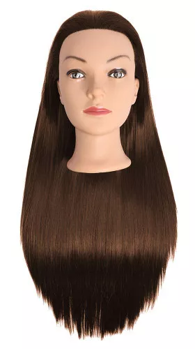 - Brązowy kolor włosów i długość 60 cm są idealne do nauki różnorodnych technik fryzjerskich.