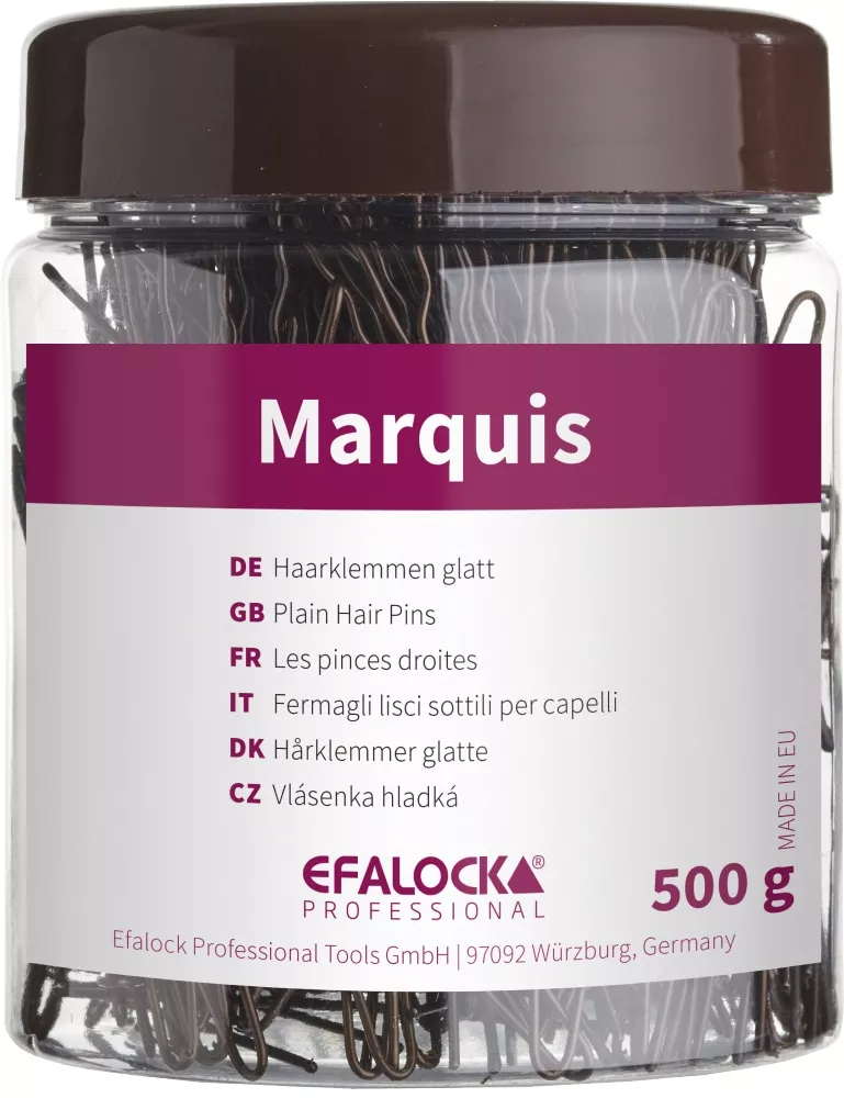 Wsuwki do włosów Efalock Marquis to doskonały wybór dla osób poszukujących wysokiej jakości akcesoriów do stylizacji włosów. Te proste wsuwki o długości 7 cm są niezawodne i trwałe, idealne do codziennego użytku. Dostępne w eleganckim kolorze brązowym, doskonale komponują się z różnymi odcieniami włosów, zapewniając dyskretne i profesjonalne wykończenie fryzury.