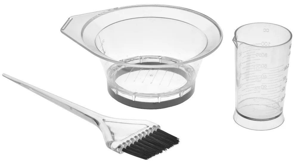 Wygodny zestaw do farbowania włosów Efalock to idealne rozwiązanie dla każdego, kto pragnie osiągnąć profesjonalne efekty koloryzacji w domowym zaciszu. Zestaw zawiera wszystko, co niezbędne do precyzyjnego i łatwego farbowania włosów, w tym miseczkę z rączką i miarką o pojemności 250 ml, akrylowy pędzel o szerokości 5 cm oraz menzurkę do wygodnego odmierzania produktów. Wszystkie akcesoria wykonane są z wytrzymałego tworzywa sztucznego, co gwarantuje ich długowieczność i komfort użytkowania.