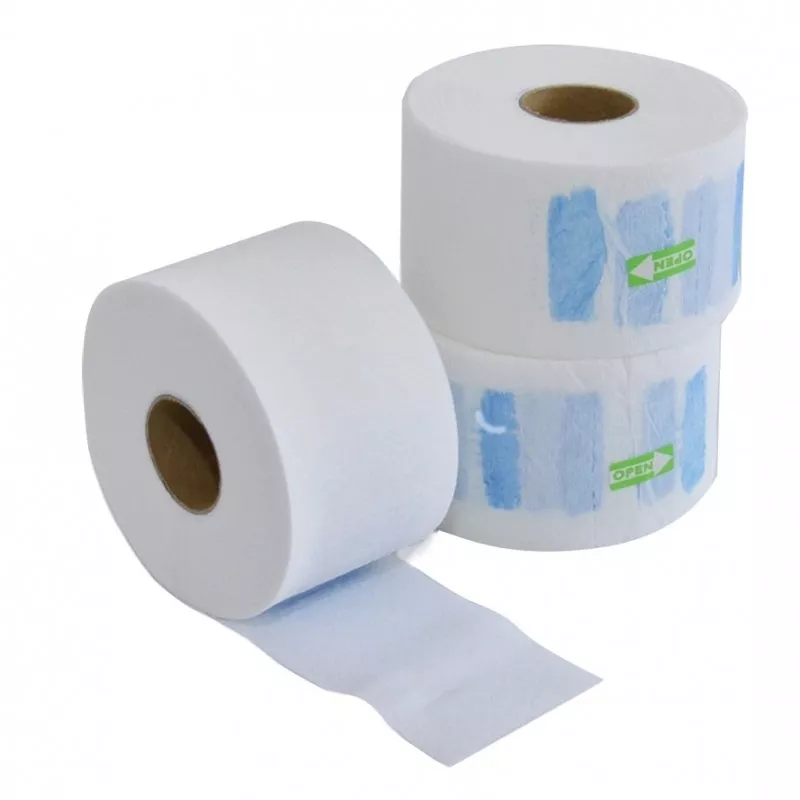 Oderwij odpowiednią długość kołnierzyka z rolki i delikatnie przyklej go wokół szyi klienta. Dzięki elastycznej strukturze dopasuje się do kształtu szyi, zapewniając komfort i ochronę.