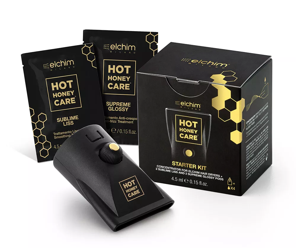 Umieść saszetkę HOT HONEY CARE w kompatybilnym koncentratorze suszarki do włosów Elchim, upewniając się, że nasadka jest dobrze zamknięta. Wysusz i ułóż włosy jak zwykle, ciesząc się natychmiastowym efektem. Zabieg nie wymaga spłukiwania.