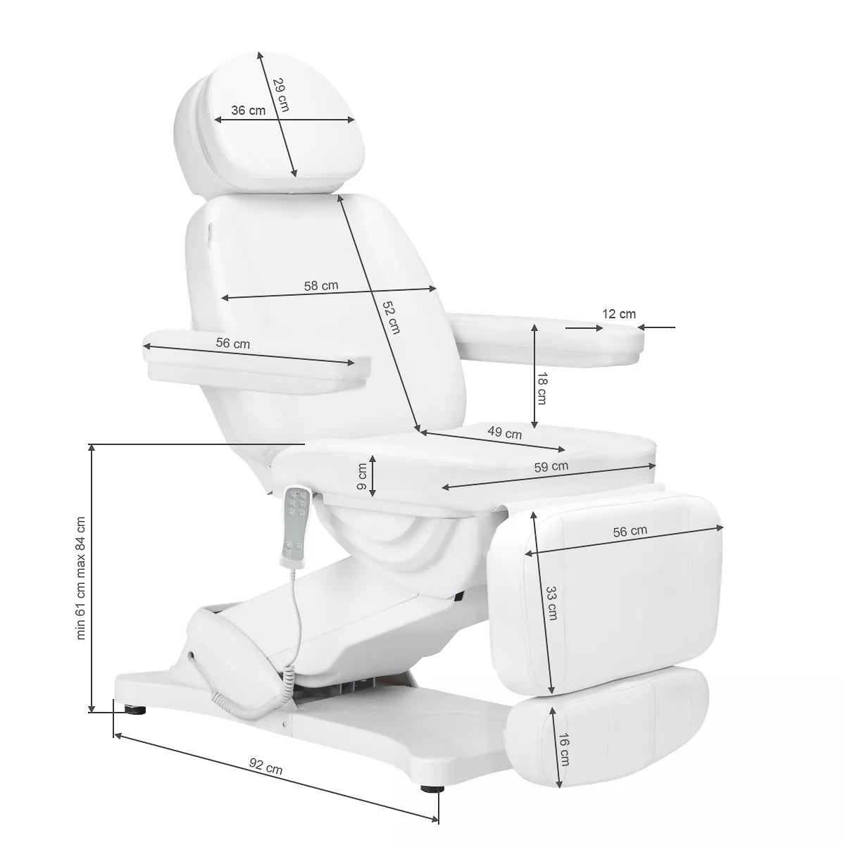 Elektryczny fotel kosmetyczny Sillon CLASSIC 3 silniki z podgrzewaniem second edition biały - dostępny w 48h