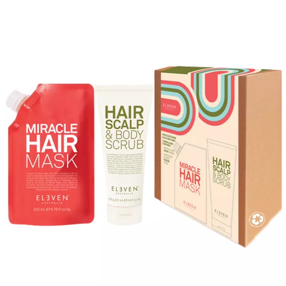 Odkryj idealne połączenie pielęgnacji włosów i ciała z zestawem Eleven Australia Mask & Scrub Duo. Ten wyjątkowy zestaw oczyszczająco-odżywiający to niezbędnik w Twojej codziennej rutynie pielęgnacyjnej, który zapewni Twoim włosom i skórze głowy zdrowy i promienny wygląd.