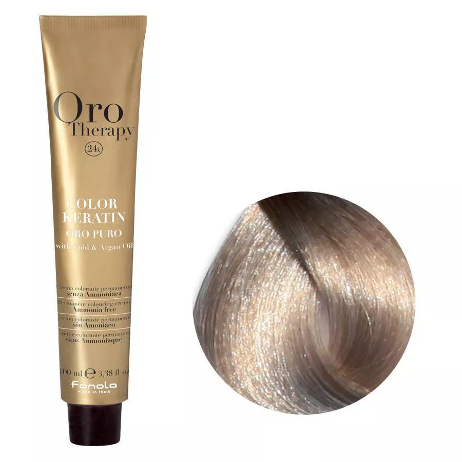 Poznaj Fanola Oro Therapy Color Keratin, farbę do trwałej koloryzacji bez amoniaku w odcieniu 10.13 extra. To innowacyjny produkt stworzony z myślą o profesjonalnej pielęgnacji i intensywnym, trwałym kolorze, który podkreśli naturalne piękno Twoich włosów. Unikalna formuła, wzbogacona o keratynę, czyste złoto oraz olejek arganowy, zapewnia nie tylko spektakularny efekt koloryzacji, ale również intensywną pielęgnację i ochronę włókien włosa.