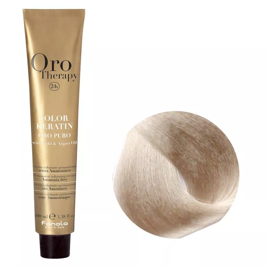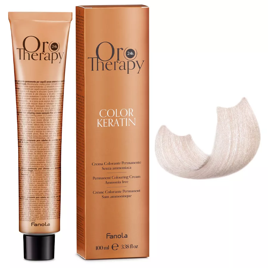 Odkryj profesjonalną koloryzację bez kompromisów dzięki Fanola Oro Therapy Color Keratin 11.7 – innowacyjnej farbie do trwałej koloryzacji włosów bez amoniaku. Ta kremowa farba została stworzona z myślą o bezpiecznym i skutecznym farbowaniu nawet najbardziej wymagających włosów. Dzięki bogatej formule z keratyną, złotem i olejkiem arganowym uzyskasz nie tylko intensywny, jednolity kolor, ale także zdrowo wyglądające, pełne blasku i nawilżone włosy.