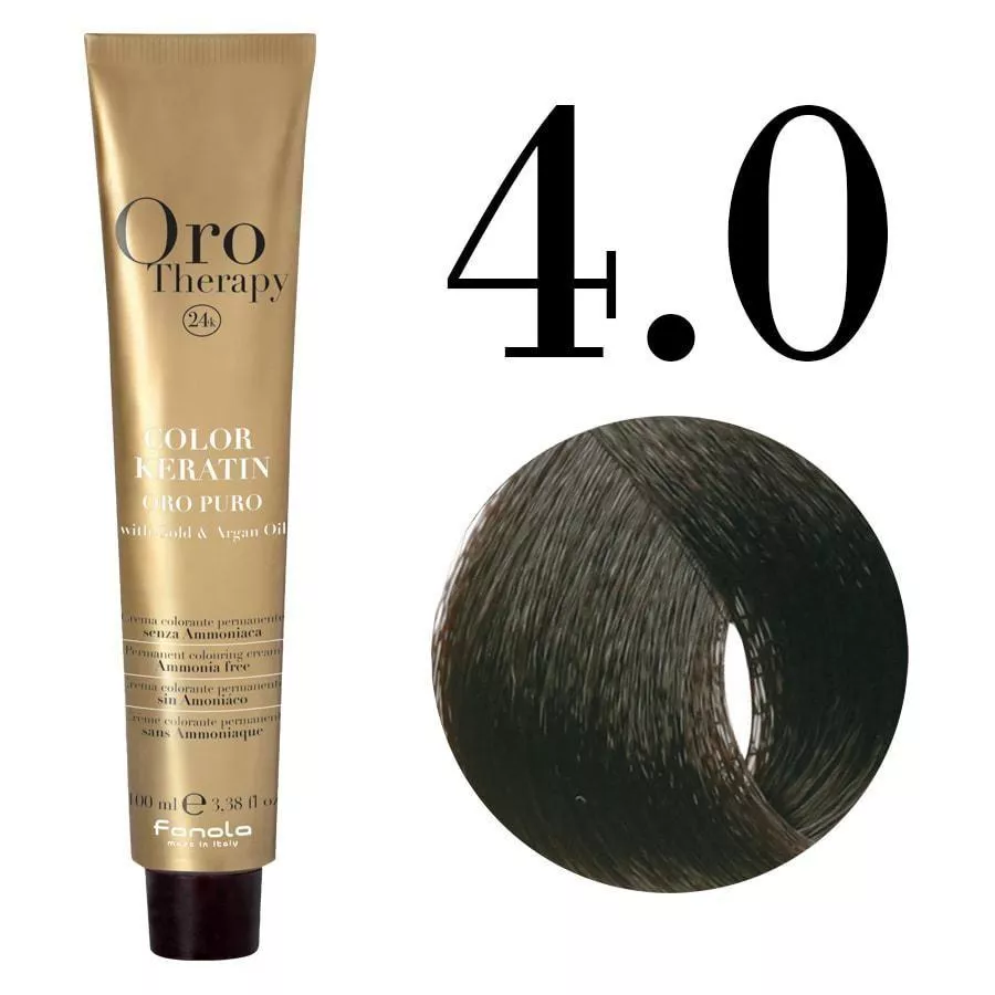 Poznaj Fanola Oro Therapy Color Keratin 4.0 – profesjonalną farbę do trwałej koloryzacji bez amoniaku, która zapewnia intensywny, głęboki kolor, pełne pokrycie siwizny i jednocześnie dba o kondycję Twoich włosów. Innowacyjna formuła wzbogacona o keratynę, czyste złoto oraz olejek arganowy gwarantuje nie tylko piękne efekty koloryzacji, ale również wyjątkową pielęgnację i ochronę włókien włosa.