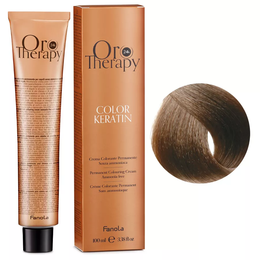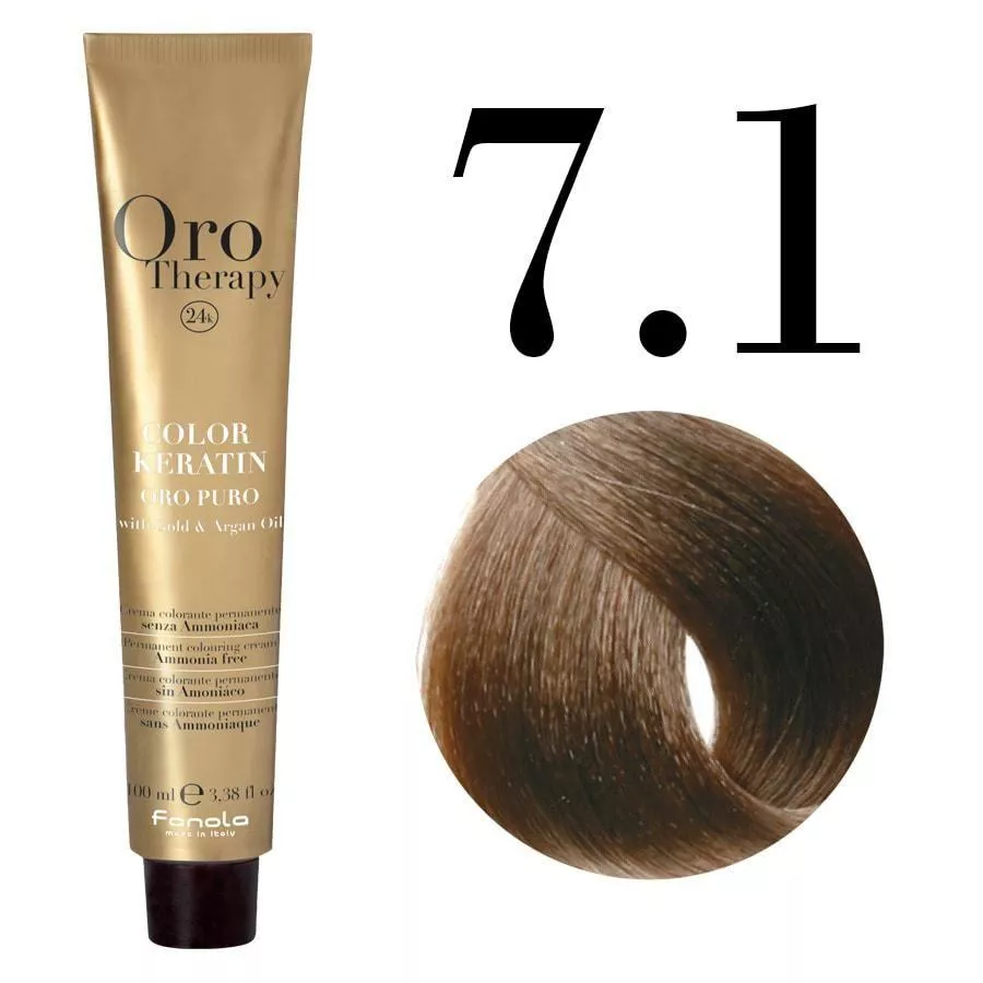 Fanola Oro Therapy Color Keratin, farba do trwałej koloryzacji bez amoniaku, 7.1, 100ml
