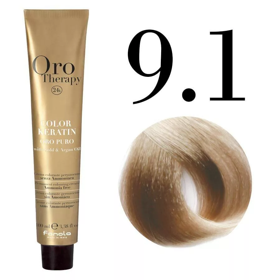 Fanola Oro Therapy Color Keratin w odcieniu 9.1 to idealny wybór dla osób, które oczekują perfekcyjnego pokrycia siwizny, pięknego, chłodnego blondu i profesjonalnej pielęgnacji podczas koloryzacji. Bez amoniaku, z cennymi składnikami odżywczymi, gwarantuje zdrowy wygląd i trwały efekt. Postaw na profesjonalną koloryzację i zamów już dziś!