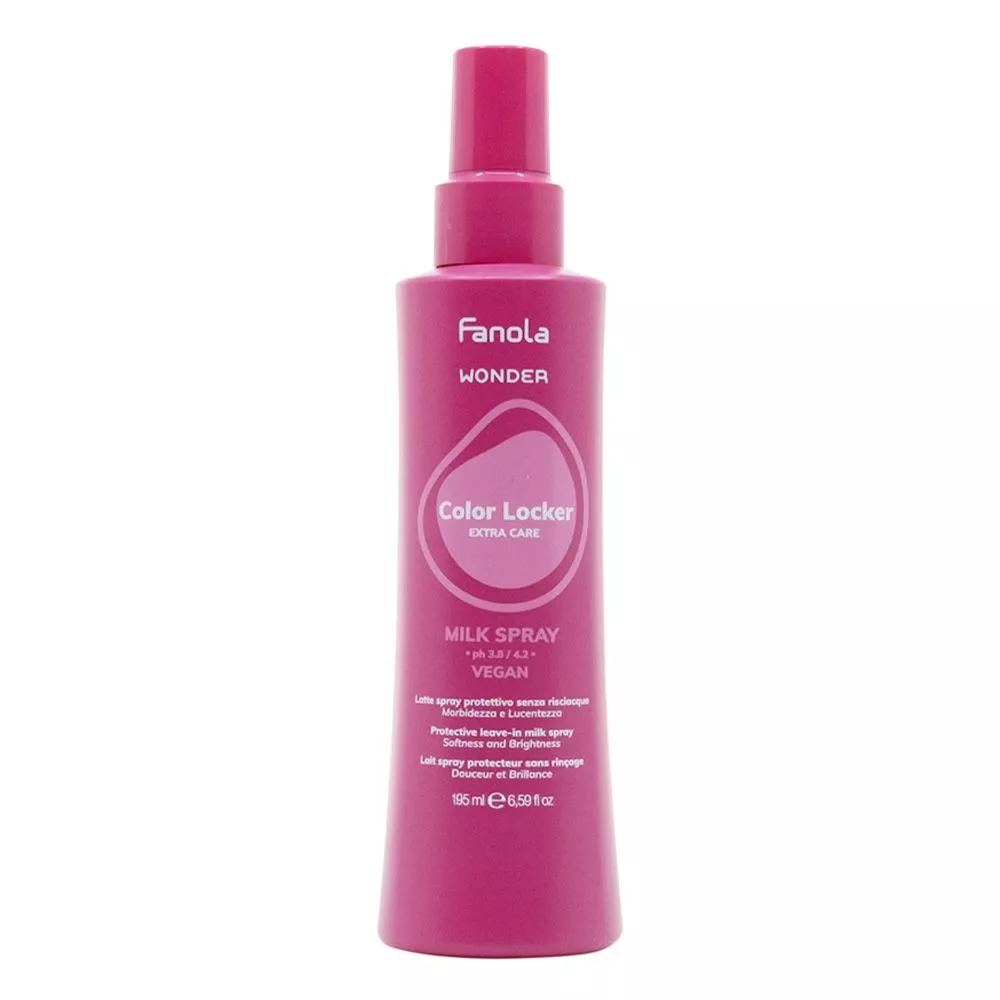 Odkryj profesjonalną pielęgnację włosów farbowanych z Fanola Wonder Color Locker Milk – lekkim sprayem w formie mleczka, który skutecznie przedłuża trwałość koloru, zapewniając jednocześnie intensywne odżywienie i olśniewający blask. Dzięki zaawansowanej, wegańskiej formule ten innowacyjny produkt sprawia, że Twoje włosy pozostają pełne życia, miękkie i gładkie, a ulubiony kolor zachwyca intensywnością przez długi czas.