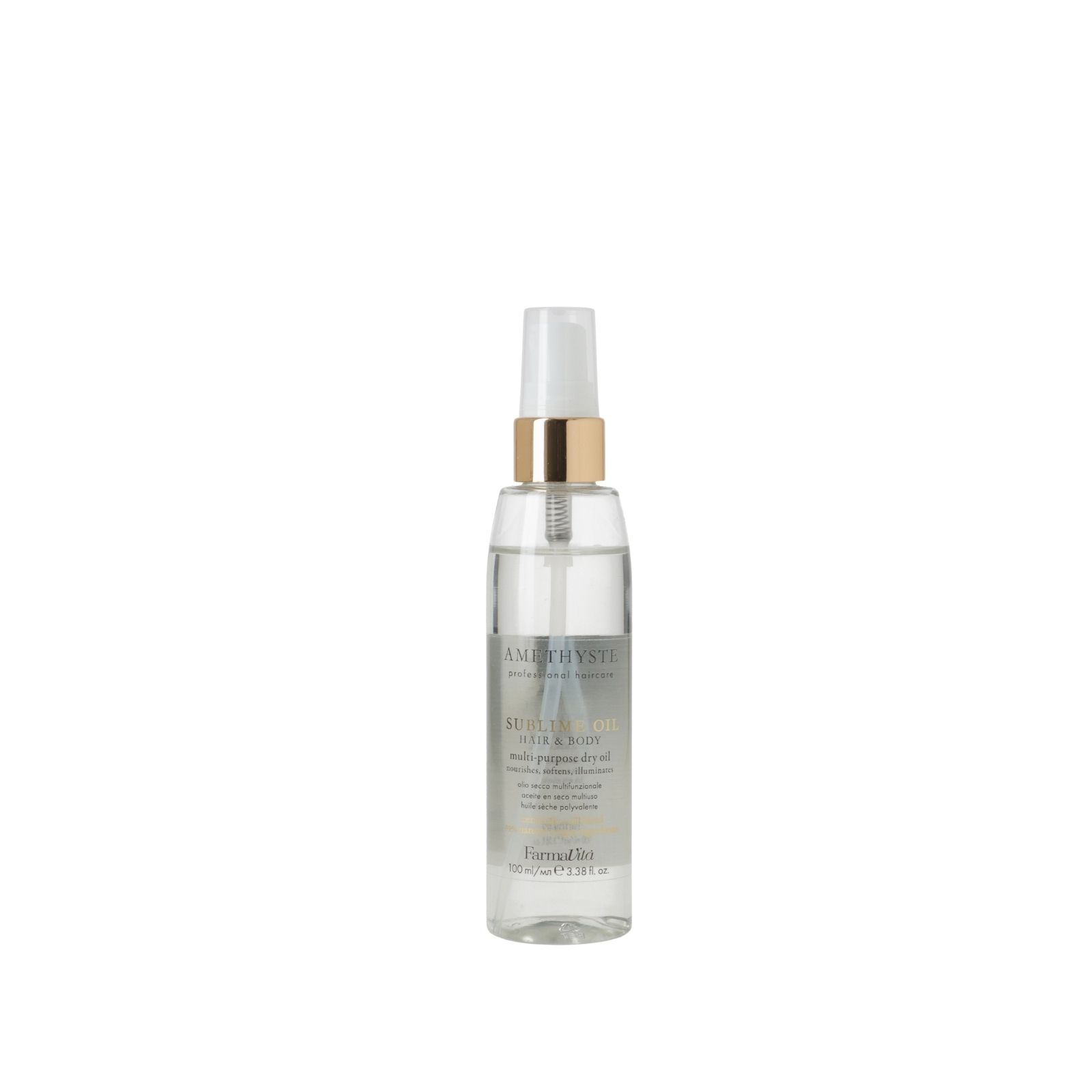 Poznaj Farmavita Amethyste Sublime Oil Hair – wielofunkcyjny suchy olejek do włosów i ciała, który zapewnia intensywną pielęgnację, nawilżenie oraz regenerację bez obciążania. Formuła nowej generacji sprawia, że kosmetyk błyskawicznie się wchłania, nie pozostawiając tłustego filmu, a jego lekka konsystencja jest idealna zarówno do codziennego stosowania, jak i jako wykończenie stylizacji. Przeznaczony do wszystkich rodzajów włosów i skóry, także wrażliwej.