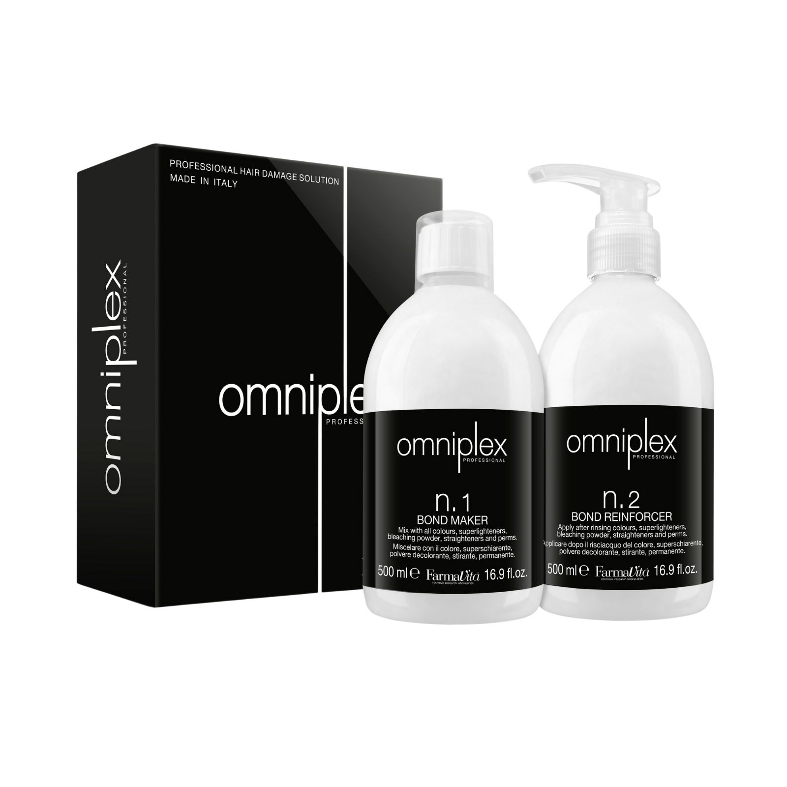 Odkryj profesjonalną pielęgnację włosów na najwyższym poziomie z zestawem Farmavita Omniplex Salon Kit. To intensywna kuracja regenerująca, która przywraca włosom siłę, elastyczność i blask, skutecznie chroniąc je podczas zabiegów chemicznych, takich jak farbowanie czy rozjaśnianie. Zestaw zawiera dwa produkty w dużych, salonowych pojemnościach – Bond Maker 500 ml oraz Bond Reinforcer 500 ml – które zapewniają kompleksową odbudowę i ochronę struktury włosa.