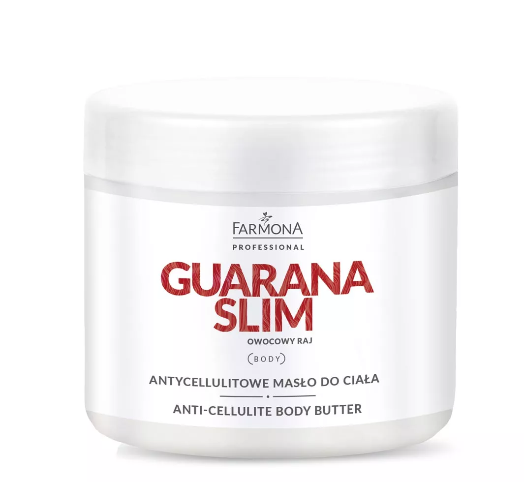 Odkryj moc natury z Farmona Professional Guarana Slim, antycellulitowym masłem do ciała o pojemności 500 ml. To wyjątkowy produkt stworzony z myślą o kobietach pragnących zredukować widoczność cellulitu i poprawić kondycję swojej skóry. Dzięki starannie dobranym składnikom aktywnym, masło skutecznie wspomaga walkę z cellulitem wodnym i tłuszczowym, a także wspiera detoksykację skóry.
