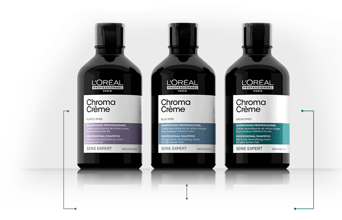 Większość produktów do neutralizacji ciepłych tonów to szampony z fioletowym pigmentem, dedykowane jasnym blondom. Do tej pory na rynku było jednak mało produktów tego typu odpowiednich dla brunetek. Chroma Crème oferuje korektę koloru i pielęgnację niezależnie od koloru włosów – od blondów po czerń. Wybierz szampon dostosowany do koloru Twoich włosów.