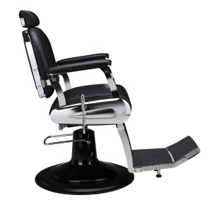 Regulowane oparcie i wygodny podnóżek zapewniają maksymalny komfort zarówno dla klienta, jak i barberów podczas codziennej pracy.