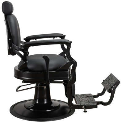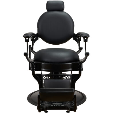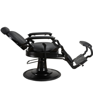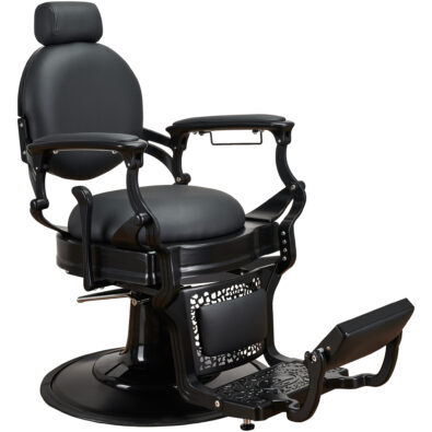 Fotel barberski SOLOMON został stworzony po to, żeby przyciągać spojrzenia, gwarantujemy Wam, że zostanie zauważony i zapamiętany. I taki był nasz zamiar. Stylizowany na lata 20 XX wieku zgrabnie wpasuje się we wnętrza zarówno klasyczne i eleganckie, jak i nowoczesne, i industrialne, wszystko zależy od Twojej wizji. Ażurowy, stalowy stelaż w kolorze szczotkowanego grafitu i czarna tapicerka tworzy niesamowity efekt. W 48H dostępny jest w wersji z grafitowym, szczotkowanym i złotym stelażem.