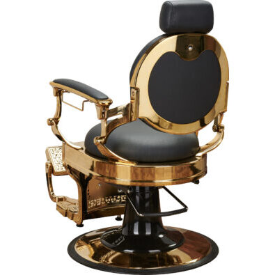 Fotel barberski SOLOMON został stworzony po to, żeby przyciągać spojrzenia, gwarantujemy Wam, że zostanie zauważony i zapamiętany. I taki był nasz zamiar. Stylizowany na lata 20 XX wieku zgrabnie wpasuje się we wnętrza zarówno klasyczne i eleganckie, jak i glamour, i industrialne, wszystko zależy od Twojej wizji. Ażurowy, stalowy stelaż w złotym kolorze i czarna tapicerka tworzy niesamowity efekt.