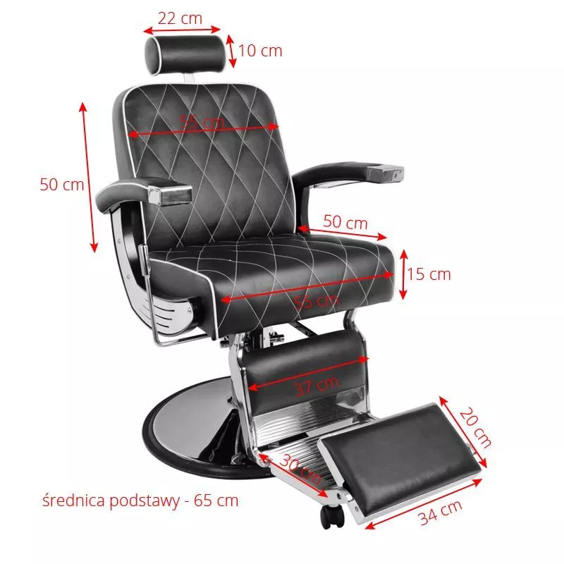 Stylowy fotel barberski Gabbiano Imperial to nowoczesny mebel łączący elegancję z funkcjonalnością. Wyposażony w podnośnik hydrauliczny, regulowany podnóżek i oparcie, umożliwia idealne dopasowanie do każdego zabiegu, zapewniając komfort zarówno klientowi, jak i barberowi. Starannie wykonane detale i estetyczne wykończenie sprawiają, że fotel nie tylko podnosi standard usług, ale także stanowi efektowny element wystroju salonu.