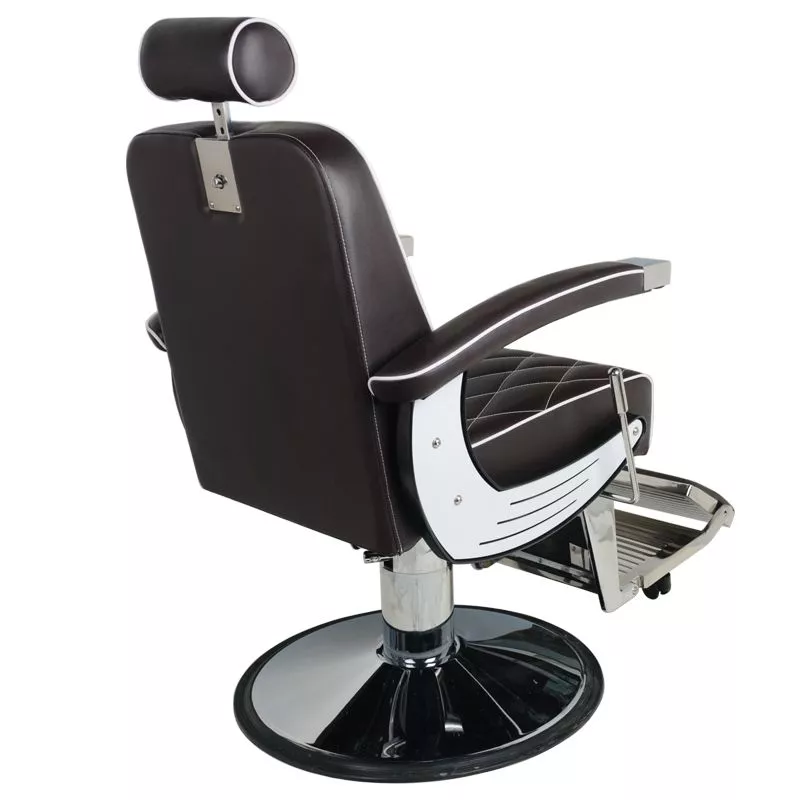 Solidna, okrągła podstawa zapewnia doskonałą stabilność fotela, gwarantując komfortową i bezpieczną pracę. Siedzisko wypełnione trwałą, odporną na odkształcenia pianką oraz obicie z wysokiej jakości skóry syntetycznej sprawiają, że mebel jest nie tylko wygodny, ale także wytrzymały i odporny na wilgoć. Łatwa do czyszczenia powierzchnia ułatwia utrzymanie higieny w salonie. Elegancki brąz przełamany eleganckimi, białymi przeszyciami nadaje fotelowi unikalnego charakteru, a detale inspirowane motocyklowym designem podkreślają męski styl, doskonale komponując się z aranżacją barbershopów.