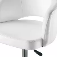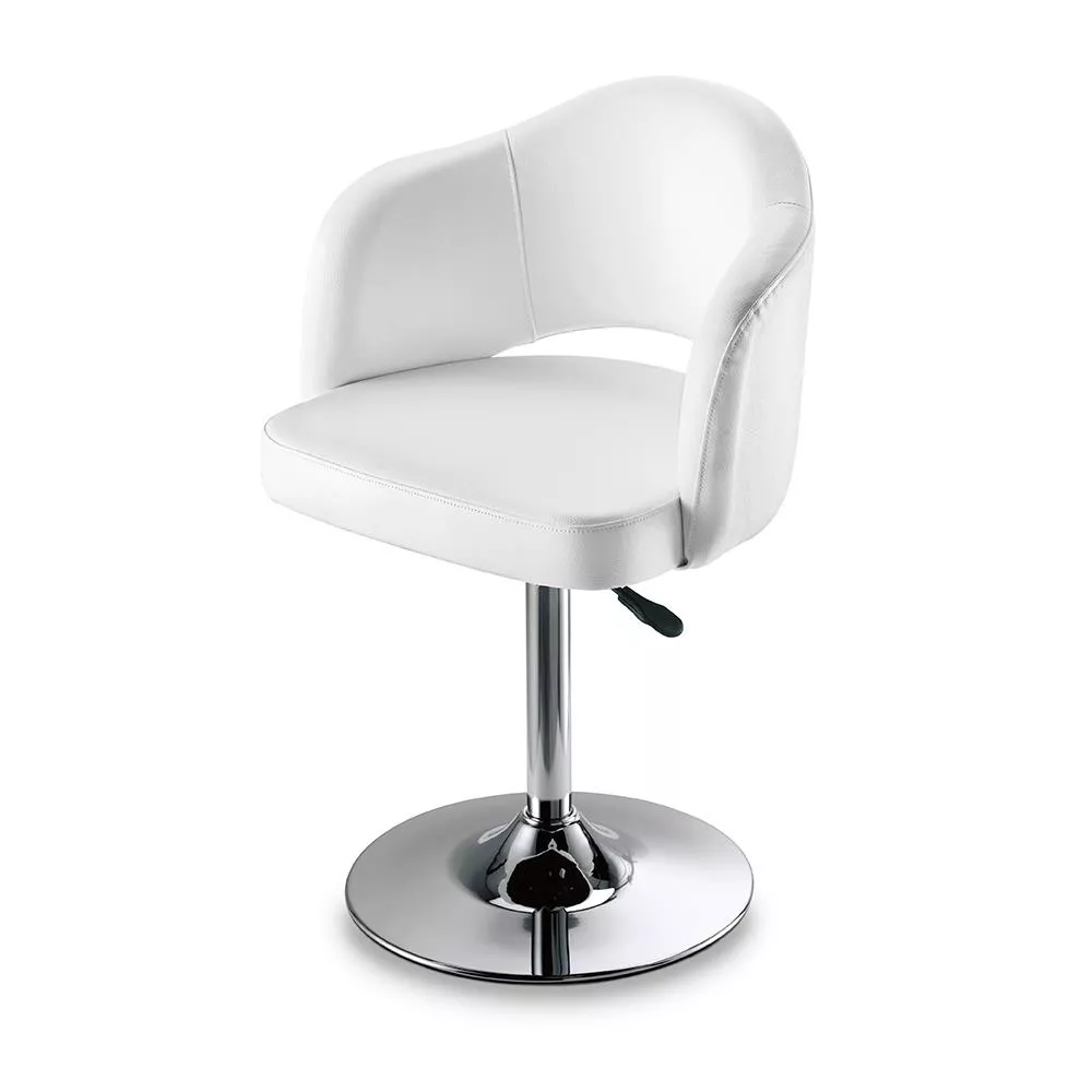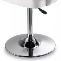 Posiada on okrągłą podstawę ze stali chromowanej oraz kolumnę do regulacji wysokości z blokadą.