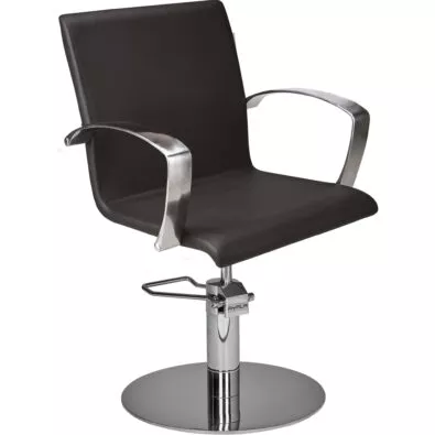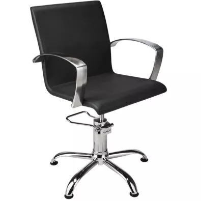 Fotel fryzjerski PARTNER, to mebel w bardzo klasycznej formie. Prosty kształt siedziska i srebrne, aluminiowe podłokietniki o ciekawym kształcie, to bardzo eleganckie zestawienie. Fotel dzięki swoim niedużym gabarytom, bardzo chętnie kupowany jest przez szkoły i centra szkoleniowe. Ważna informacja – podłokietniki aluminiowe z czasem mogą matowieć, ale nie ma się czego obawiać, wystarczy od czasu do czasu użyć delikatnej pasty polerskiej do czyszczenia i przetrzeć je energicznie miękką szmatką.