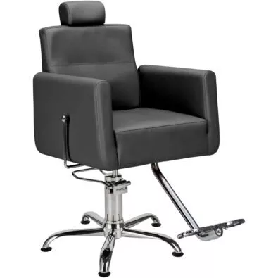 Fotel RAY to idealny mebel do salonów w których miejsce jest na wagę złota, może być użytkowany zarówno jako fotel barberski, fryzjerski, czy też fotel kosmetyczny lub do wizażu. Szerokie podłokietniki, profilowane, regulowane oparcie i zagłówek, oraz wbudowany srebrny podnóżek sprawiają, że siedzenie w nim to czysta przyjemność. Dzięki swoim niedużym, jak na fotel barberski, wymiarom jest również bardzo komfortowy w użytkowaniu dla fryzjera lub barbera. Z czystym sumieniem możemy go Wam polecić.