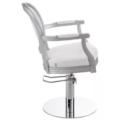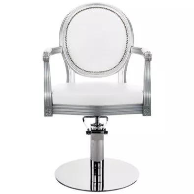 ROYAL to fotel fryzjerski inspirowany klasycyzmem Ludwika XVI. Bogato zdobiony, najwyższej jakości drewniany stelaż importujemy dla Was prosto z Włoch. Dzięki możliwości wyboru koloru tapicerki i koloru stelaża bez problemu możesz dostosować jej wygląd do kolorystyki w swoim salonie. Ze swojej strony gwarantujemy, że zadacie z nim szyku. Fotel jest dostępny wyłącznie na zamówienie, ale wyprodukujemy go dla Ciebie w takiej konfiguracji jaką sobie wymarzysz. Tapicerka do wyboru w jednym z kilkudziesięciu kolorów skaju z naszej oferty.