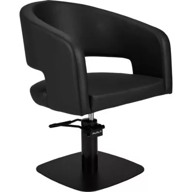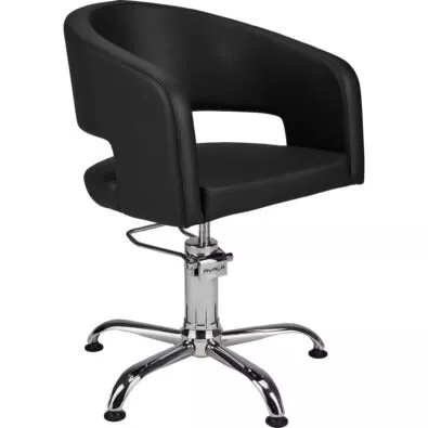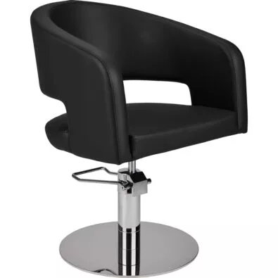 Fotel fryzjerski ZOE - szerokie wygodne siedzisko i niebanalna forma. Kubełkowe oparcie i kształt podłokietników sprawiają, że klient siadając w nim wręcz się zatapia – naprawdę bardzo wygodny model z otworem w oparciu ułatwiającym czyszczenia.