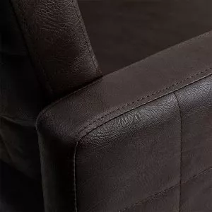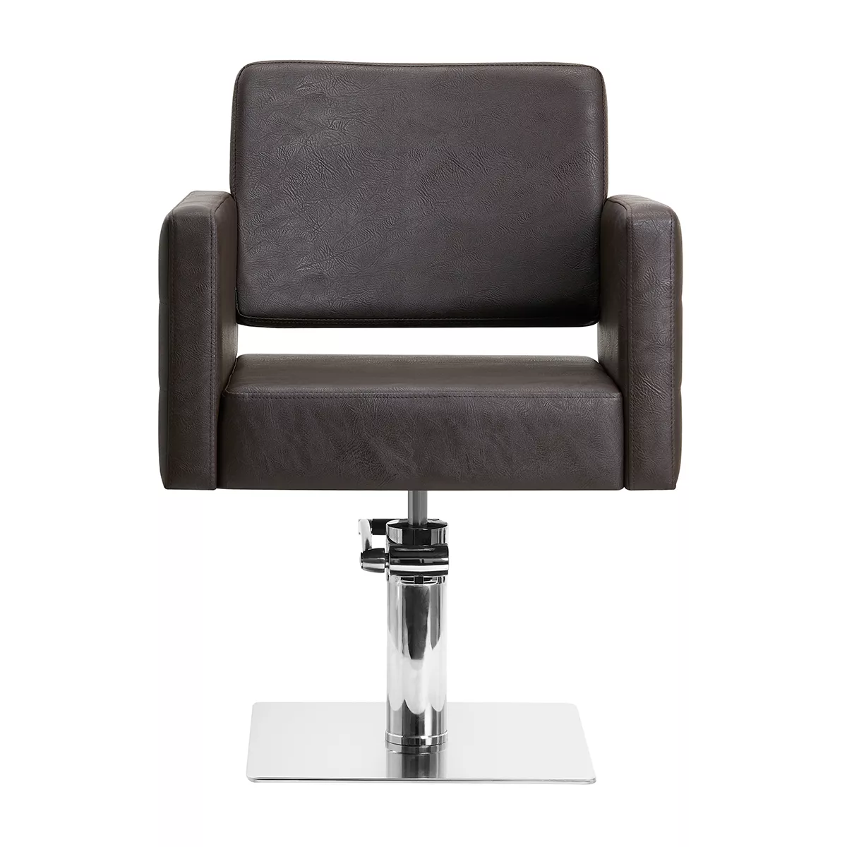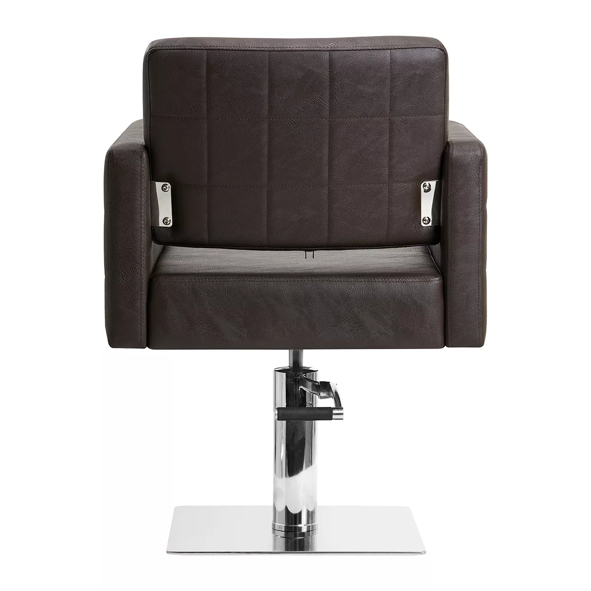 Wygodny fotel wypełniony jest trwałą i odporną na odkształcenia pianką, co zapewnia wieloletnie użytkowanie, wysoki komfort oraz wygodę nawet podczas wielogodzinnych zabiegów. Obicie wykonane jest z przyjemnej w dotyku skóry syntetycznej, a zastosowanie takiego materiału sprawia, że sprzęt jest odporny na wilgoć, wytrzymały oraz bardzo łatwy w czyszczeniu. Pokrycie w odcieniach brązu wraz z ciekawymi wizualnie elementami nadają mu wyjątkowego charakteru. Sprzęt wyróżnia elegancki design, który sprawia, że fotel będzie doskonale prezentować się w wielu wnętrzach salonów fryzjerskich.