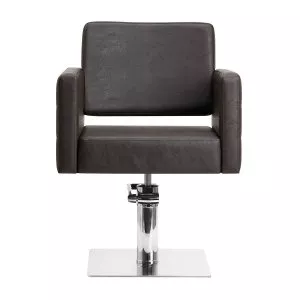 Solidna, płaska podstawa w kształcie kwadratu zapewnia stabilność w trakcie użytkowania. Gładka powierzchnia o lustrzanym wykończeniu nadaje elementowi elegancki wygląd i sprawia, że ten jest łatwy do utrzymania w czystości. Wygodne siedzisko wypełnione trwałą pianką zapewnia wysoki komfort użytkowania, nawet podczas wielogodzinnych zabiegów. Obite skórą syntetyczną podłokietniki z ozdobnymi przeszyciami są ciekawym wizualnie elementem, a co ważniejsze, pozwalają na prawidłowe ułożenie barków klienta. Sprawia to, że nie chowa on głowy w ramionach ani się nie garbi – wyraźnie ułatwia to wykonywanie precyzyjnych zabiegów, w tym strzyżenia. Wyposażenie fotela w mechanizm pełnego obrotu sprawia, że praca fryzjera staje się bardziej efektywna i wygodna.