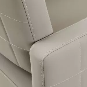 Wygodny fotel wypełniony jest trwałą i odporną na odkształcenia pianką, co zapewnia wieloletnie użytkowanie, wysoki komfort oraz wygodę nawet podczas wielogodzinnych zabiegów. Obicie wykonane jest z przyjemnej w dotyku skóry syntetycznej, a zastosowanie takiego materiału sprawia, że sprzęt jest odporny na wilgoć, wytrzymały oraz bardzo łatwy w czyszczeniu. Pokrycie w odcieniach szarości wraz z ciekawymi wizualnie elementami nadają mu wyjątkowego charakteru. Sprzęt wyróżnia elegancki design, który sprawia, że fotel będzie doskonale prezentować się w wielu wnętrzach salonów fryzjerskich.