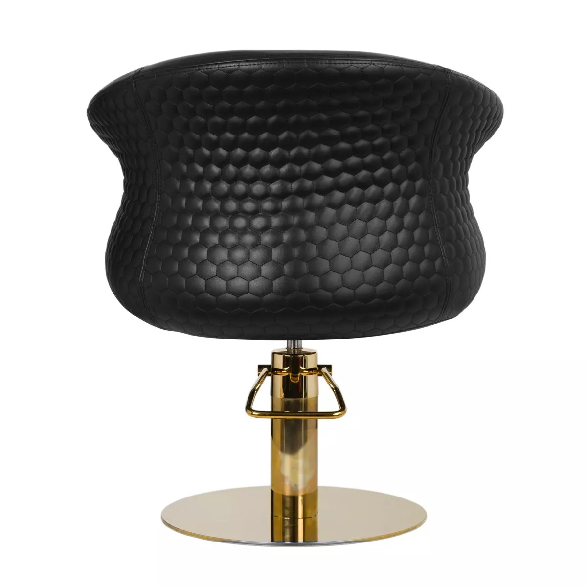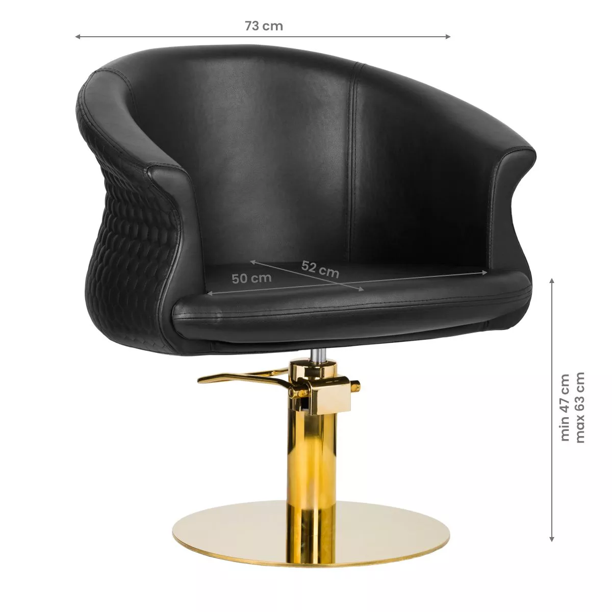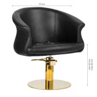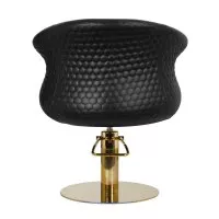 Solidna podstawa w kształcie koła gwarantuje stabilność mebla. Gładka powierzchnia o lustrzanym wykończeniu sprawia, że element ten jest łatwy do utrzymania w czystości. Wygodne siedzisko z wypełnieniem z pianki zapewnia wysoki komfort użytkowania nawet podczas wielogodzinnych zabiegów. Mechanizm pełnego obrotu sprawia, że praca fryzjera staje się bardziej efektywna i wygodna. Podłokietniki umiejscowione na odpowiedniej wysokości pozwalają na prawidłowe ułożenie barków klienta – sprawia to, że nie chowa głowy w ramionach ani się nie garbi – wyraźnie ułatwiając precyzyjne wykonywanie zabiegów, w tym strzyżenia.