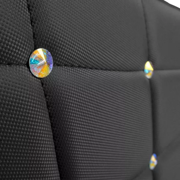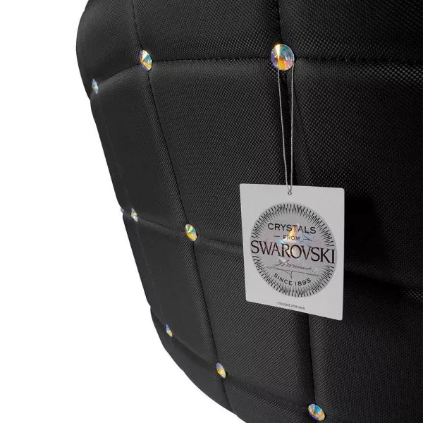 Całość pikowana w kwadrat i wykończona szlachetnymi kryształami Swarovski.