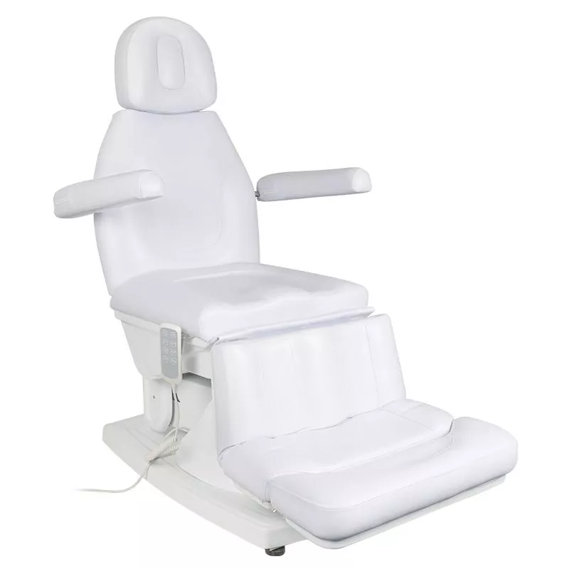 Elektryczny fotel podologiczny Kate łączy funkcjonalność z nowoczesnym, minimalistycznym designem. Wyposażony w 4 siłowniki sterowane pilotem na kablu, zapewnia szeroki zakres regulacji, w tym wygodne dopasowanie podnóżka. Ergonomicznie wyprofilowane siedzisko oraz możliwość ustawienia fotela w wielu pozycjach pozwalają na pełne dostosowanie do potrzeb klienta i specjalisty. Dzięki temu fotel sprawdzi się zarówno w gabinetach podologicznych, jak i w innych placówkach wymagających komfortowych i wszechstronnych rozwiązań.