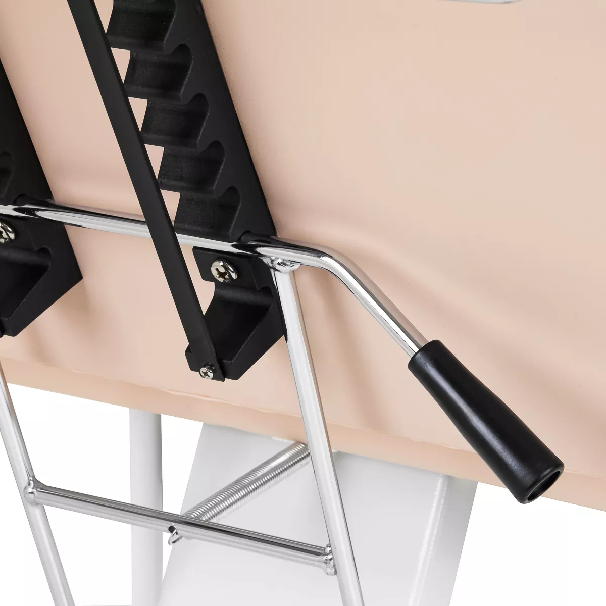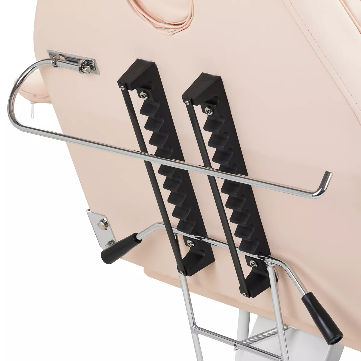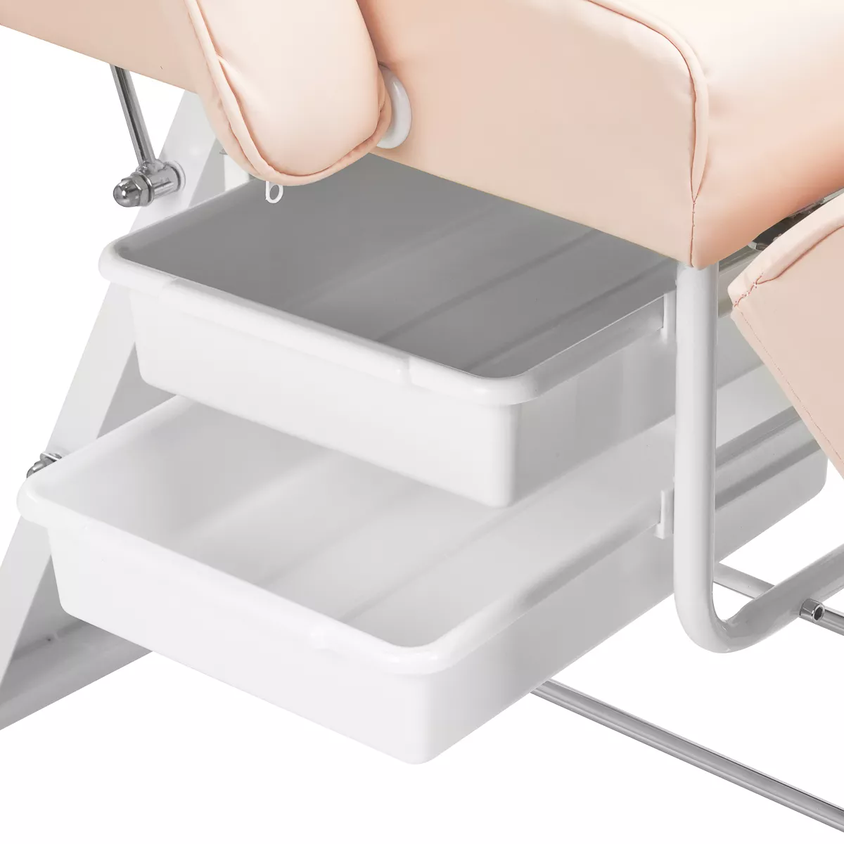 Specjalny mechanizm zapewnia stopniową regulację kątów podnóżka i oparcia. Przy użyciu dźwigni można swobodnie dostosowywać ustawienie fotela. Pozwala to na optymalne dopasowanie do indywidualnych potrzeb, dla prawidłowego i wygodnego wykonywania zabiegów oraz wysokiego komfortu użytkowania. Fotel można rozłożyć do pozycji leżanki, co znacząco zwiększa jego funkcjonalność. Pozwala to swobodnie wykonywać różnego rodzaju zabiegi między innymi z zakresu kosmetyki, fizjoterapii czy tatuażu.