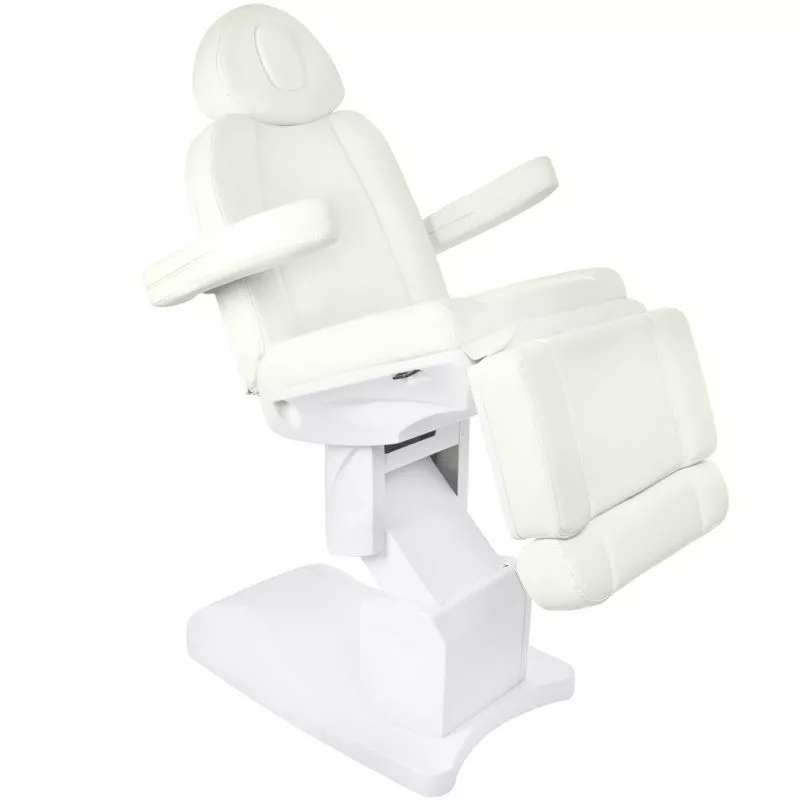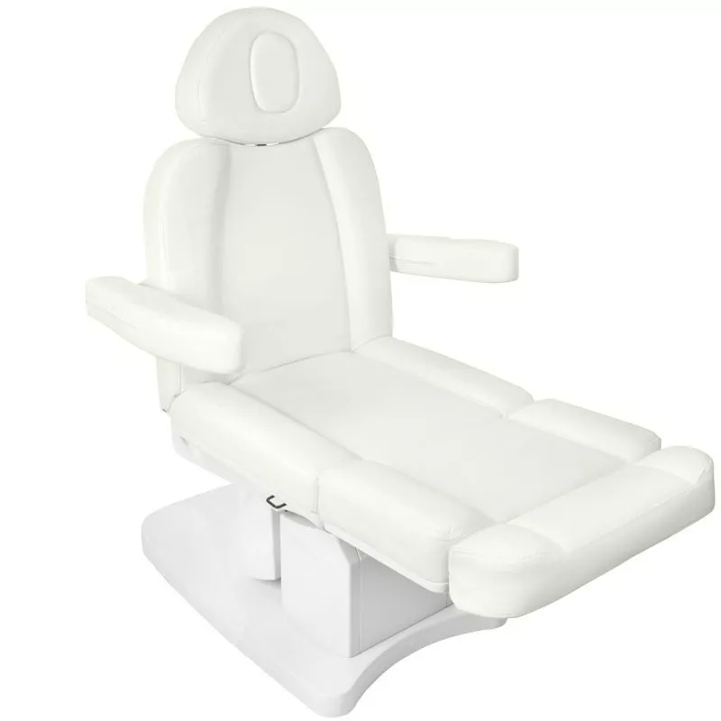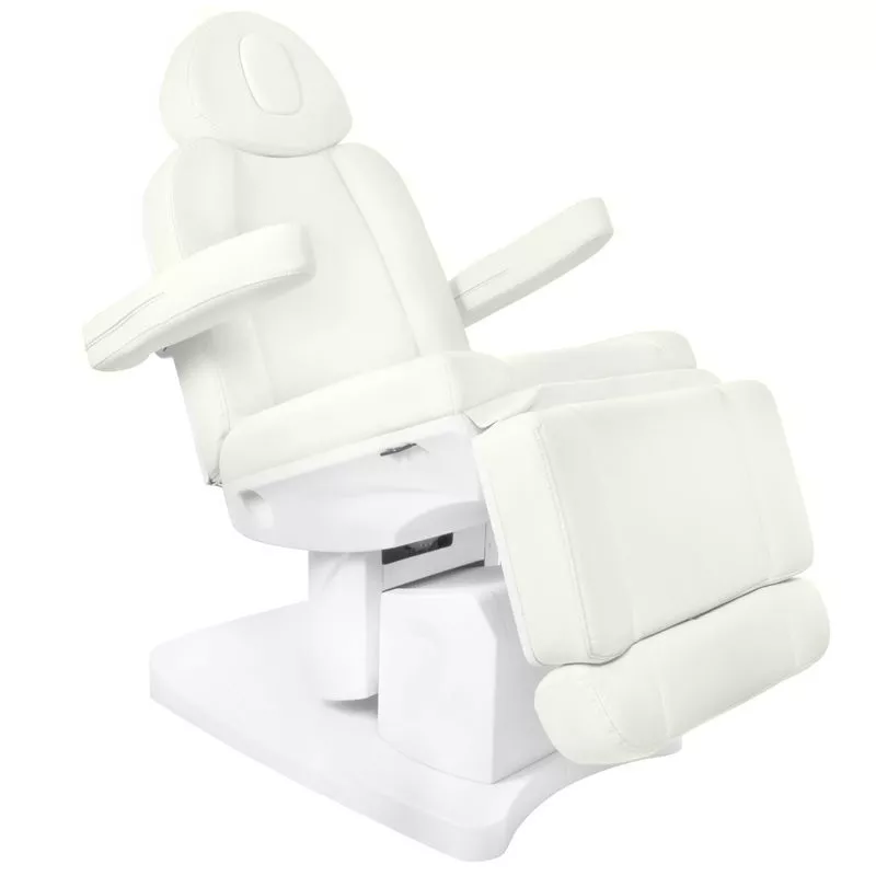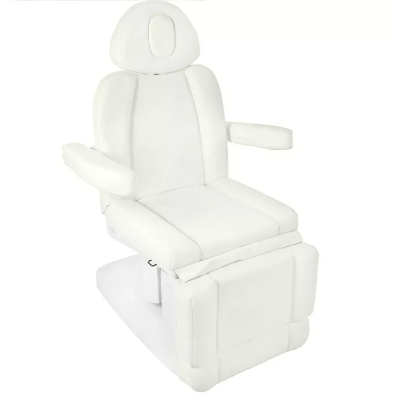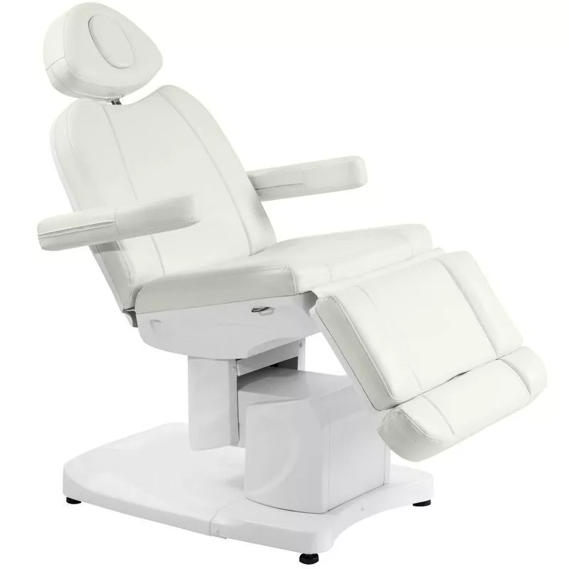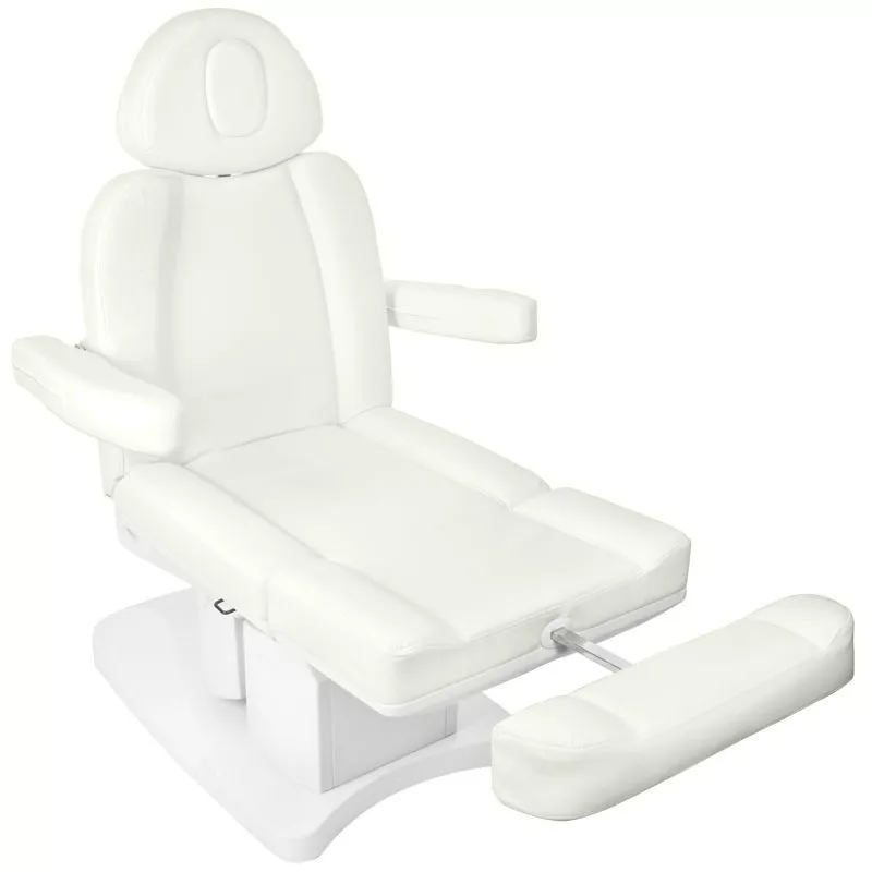 Regulacja w 4 płaszczyznach: Niezależne silniki umożliwiają dostosowanie wysokości, nachylenia oparcia, podnóżków oraz ustawienie siedziska w pozycji kołyski, co pozwala na wykonywanie różnorodnych zabiegów na twarz i ciało.