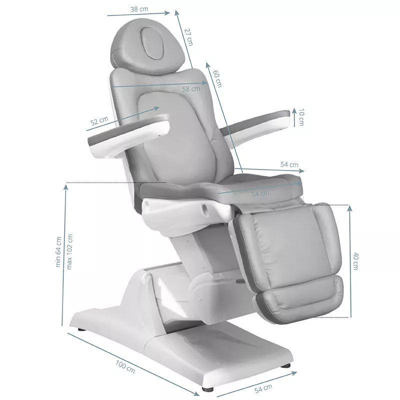 Odkryj nowoczesny komfort i funkcjonalność z elektrycznym fotelem kosmetycznym Azzurro 870. Dzięki trzem cichym silnikom, ten elegancki fotel w odcieniu modnej, zimnej szarości zapewnia maksymalne wygody zarówno dla klientów, jak i osób wykonujących zabiegi. Dostępny w ciągu 48 godzin, jest idealnym wyborem dla każdego salonu kosmetycznego, który ceni sobie jakość i nowoczesny design.