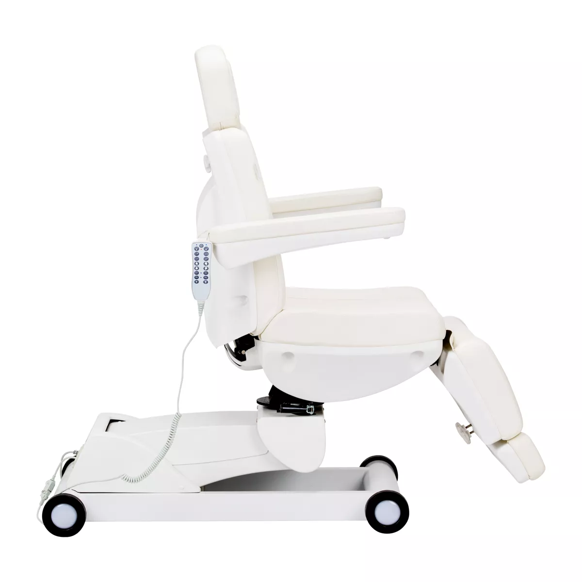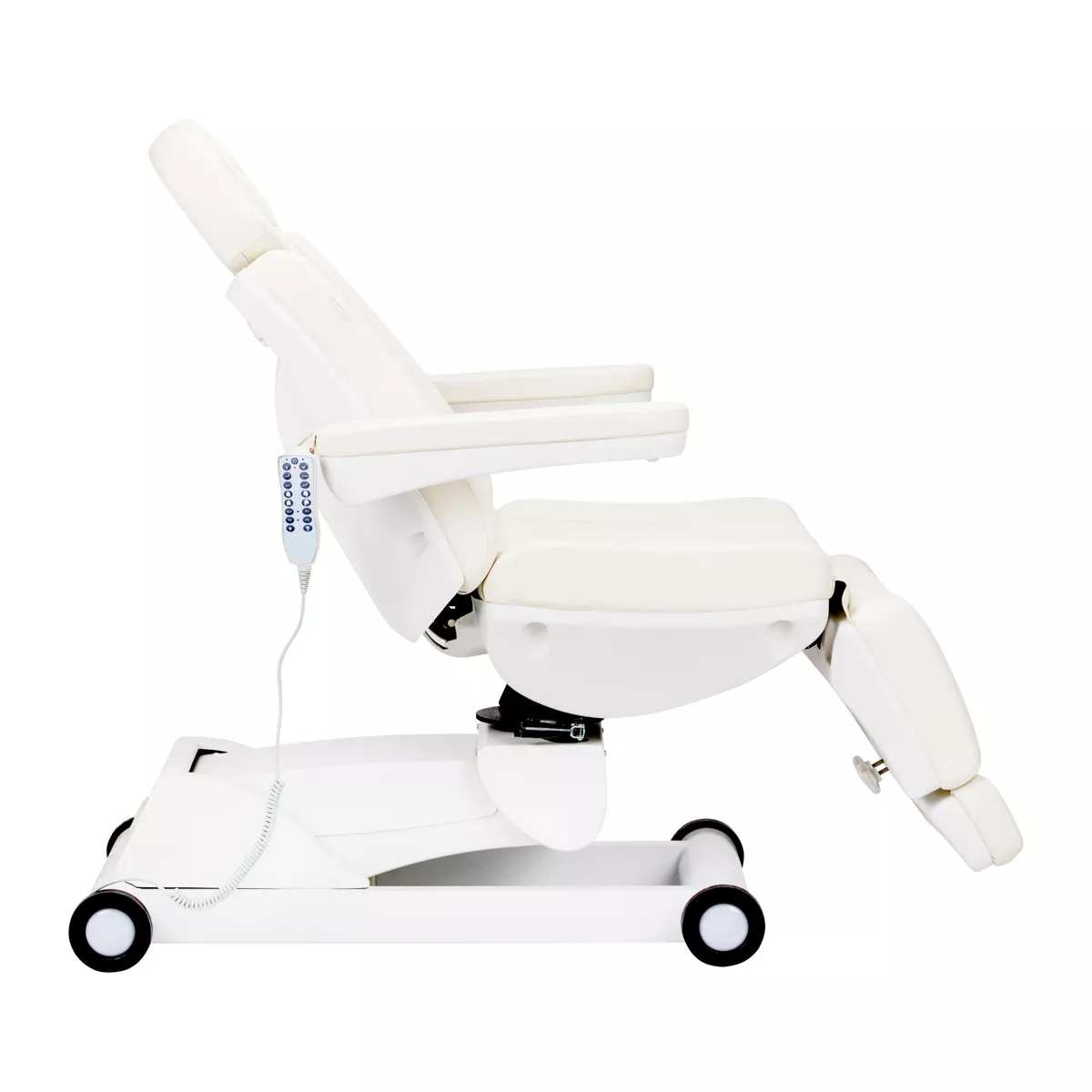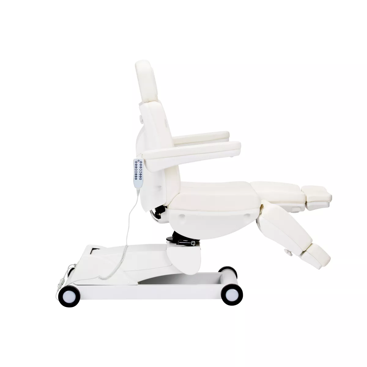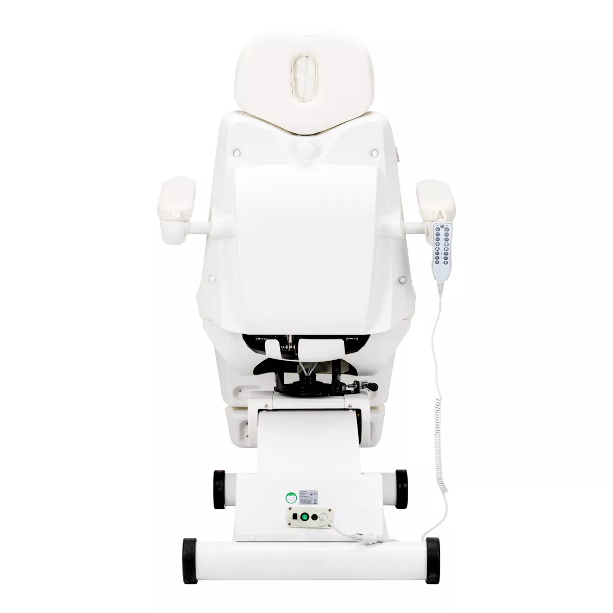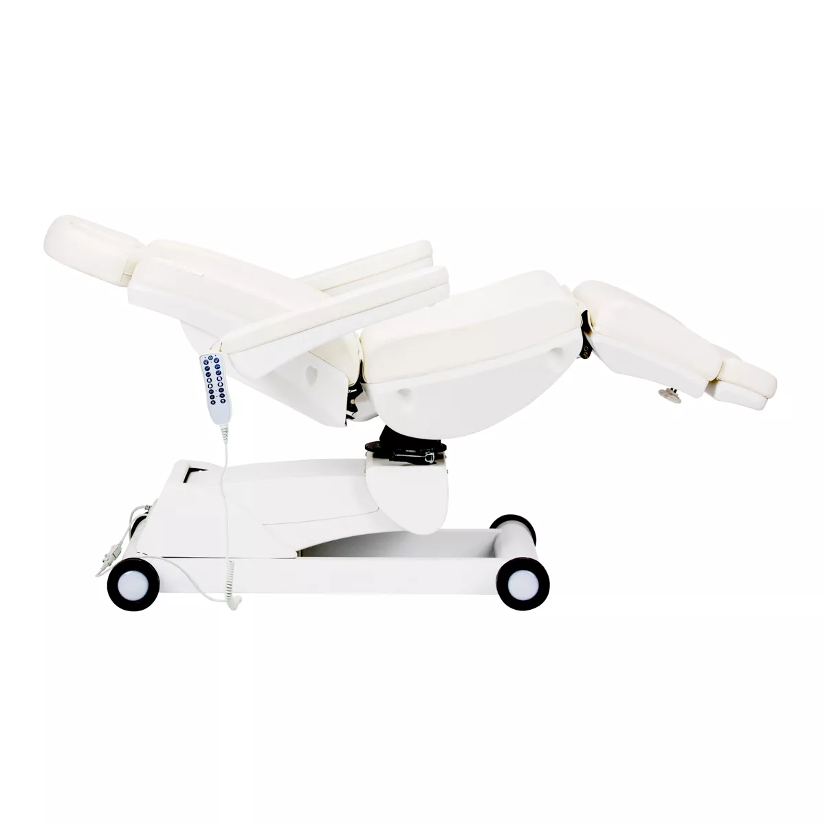 Elektryczny fotel podologiczny Azzurro jest wyposażony w 4 siłowniki, sterowane za pomocą pilota przewodowego. Wyróżnia go możliwość prostego zapisywania niestandardowych ustawień pozycji, dzięki czemu jednym przyciskiem można szybko do nich wrócić. Cechuje się stabilnością, znaczną możliwością indywidualizacji oraz uniwersalnością, sprawdzi się więc w wielu specjalistycznych gabinetach.
