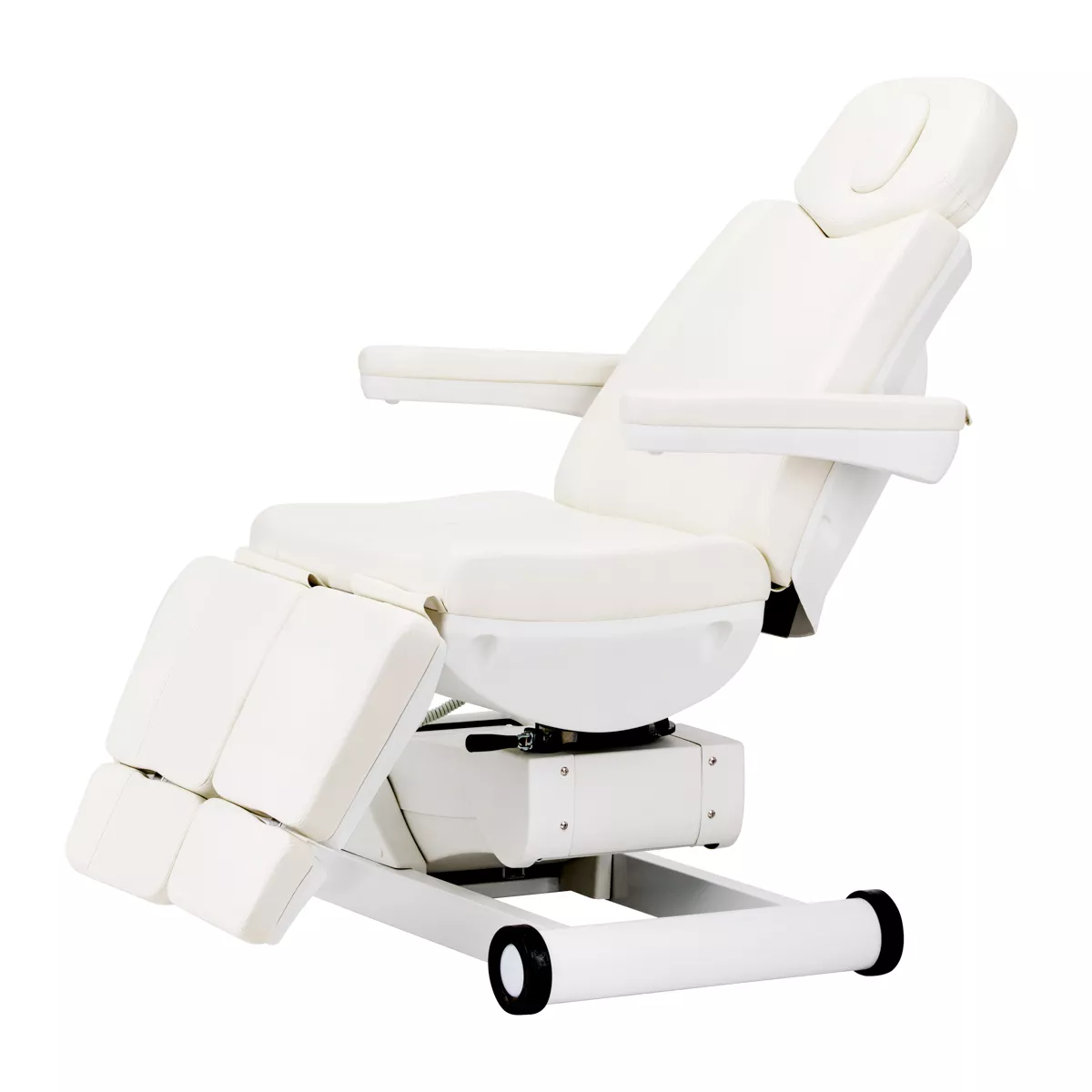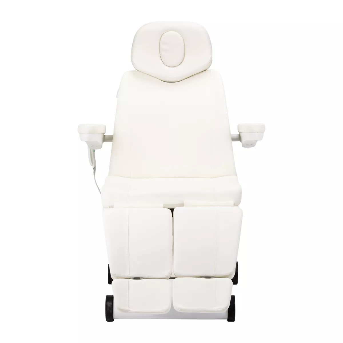Znaczącym atutem tego modelu jest dzielony podnóżek, który pozwala na niezależne układanie pozycji nóg. Pełni to istotną rolę zwłaszcza w trakcie wykonywania zabiegów podologicznych czy pedicure.